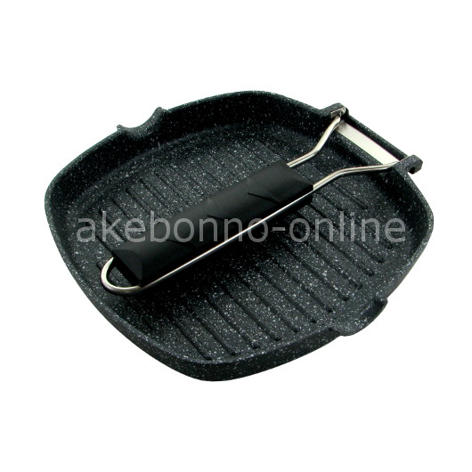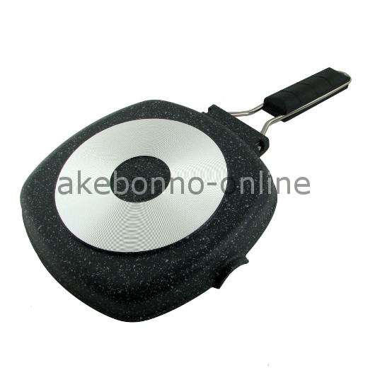 Panggangan berbentuk pan dengan coating marble anti lengket terbuat dari aluminium cor tebal dan gagang plastik yang dapat dilipat.