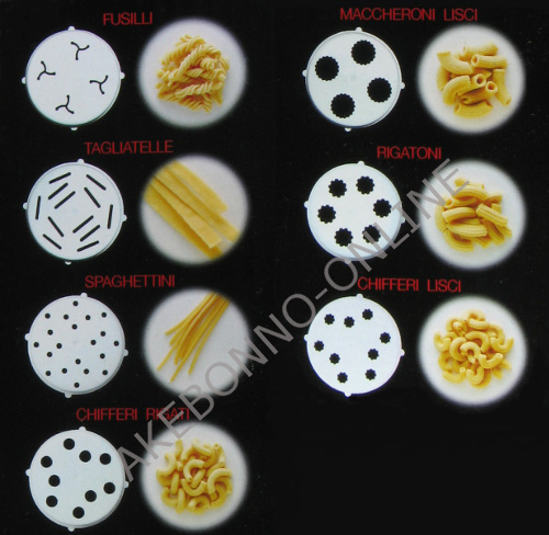 Pasta maker sekaligus dapat berfungsi untuk gilingan daging dan pembuat sosis. terbuat dari plastik ABS, keras dan tidak mudah pecah, sedangkan mata pisau terbuat dari baja. Untuk pasta maker ada 7 cetakan, fusili, macaroni, spagetti, rigatoni, tagliatelle, chifferi rigati dan chifferi lisci. Untuk gilingan daging ada 2 cetakan, ukuran lubang 4mm dan 7mm dan 1 cetakan sosis dengan ukuran 2 cm. Terdapat juga pasta cutter untuk memotong pasta hasil dari cetakan dan pasta hanger untuk mengeringkan pastanya. Mudah penggunaanya dapat diletakkan diatas meja dan tidak akan bergeser karena dilengkapi dengan kop karet pada dasar pasta maker.
